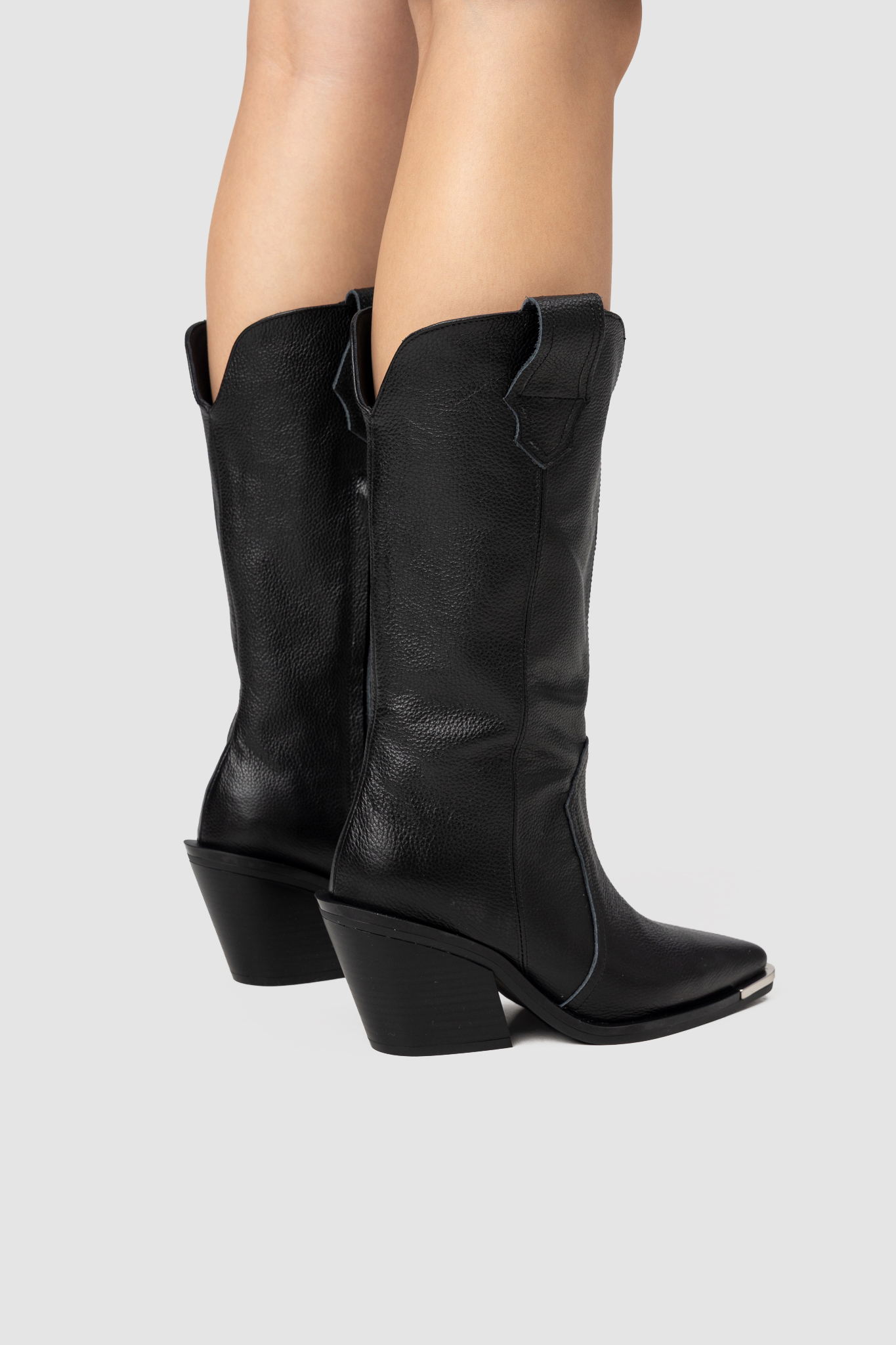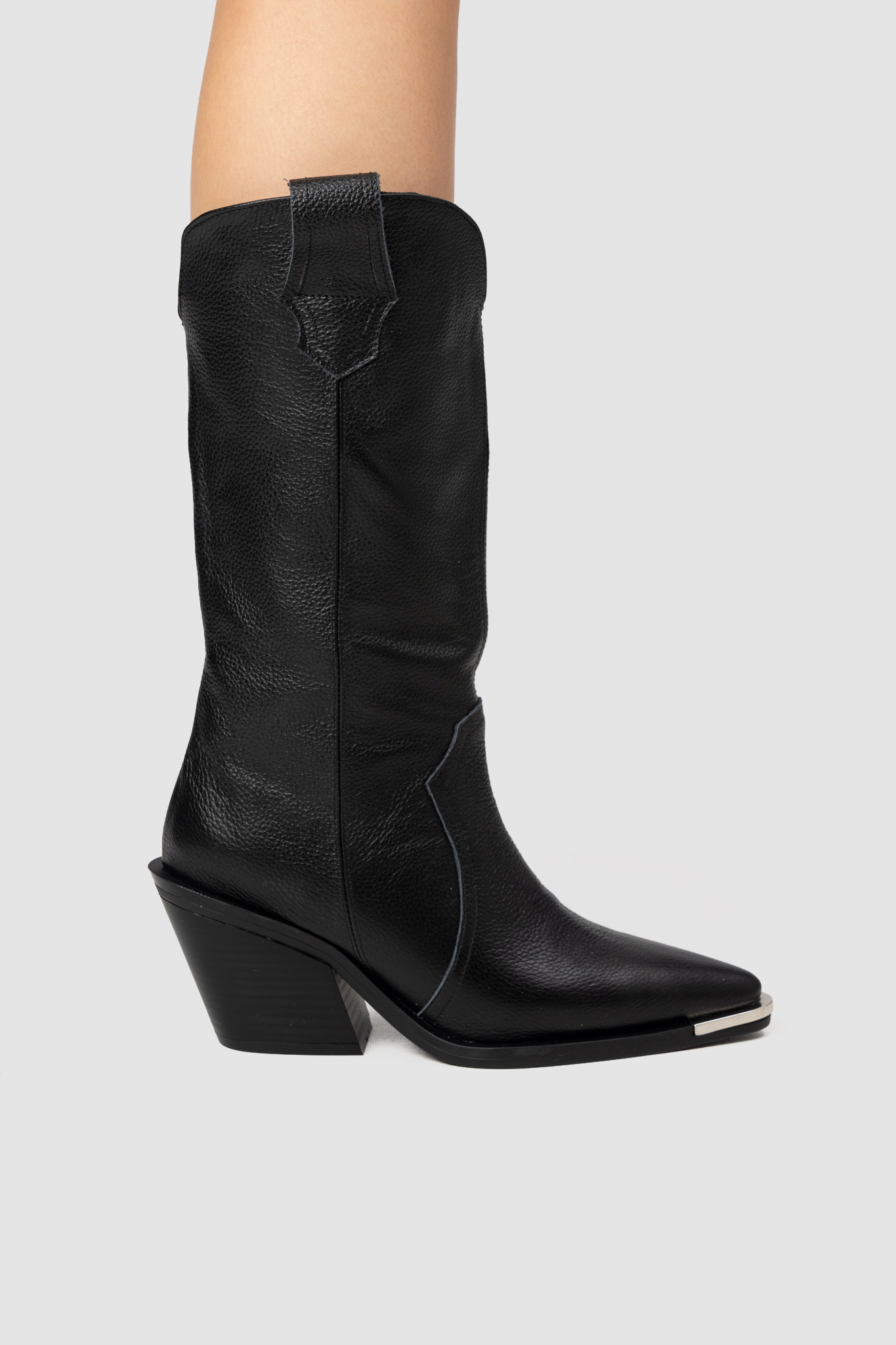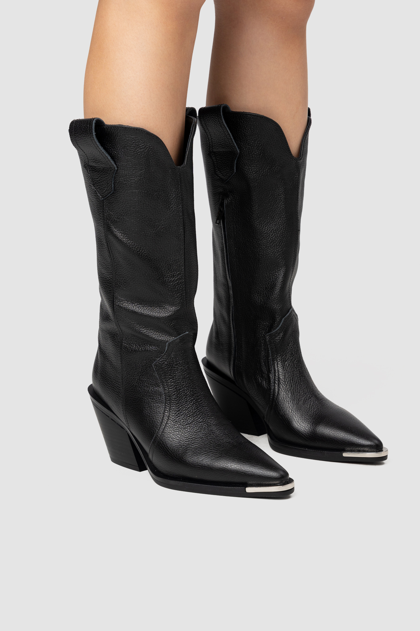Eleganță western reinterpretată – aceste cizme cu toc gros și vârf ascuțit îmbină rafinamentul urban cu spiritul liber al vestului sălbatic. Construcția din piele naturala premium și finisajele metalice subtile transformă orice pas într-o declarație de stil.