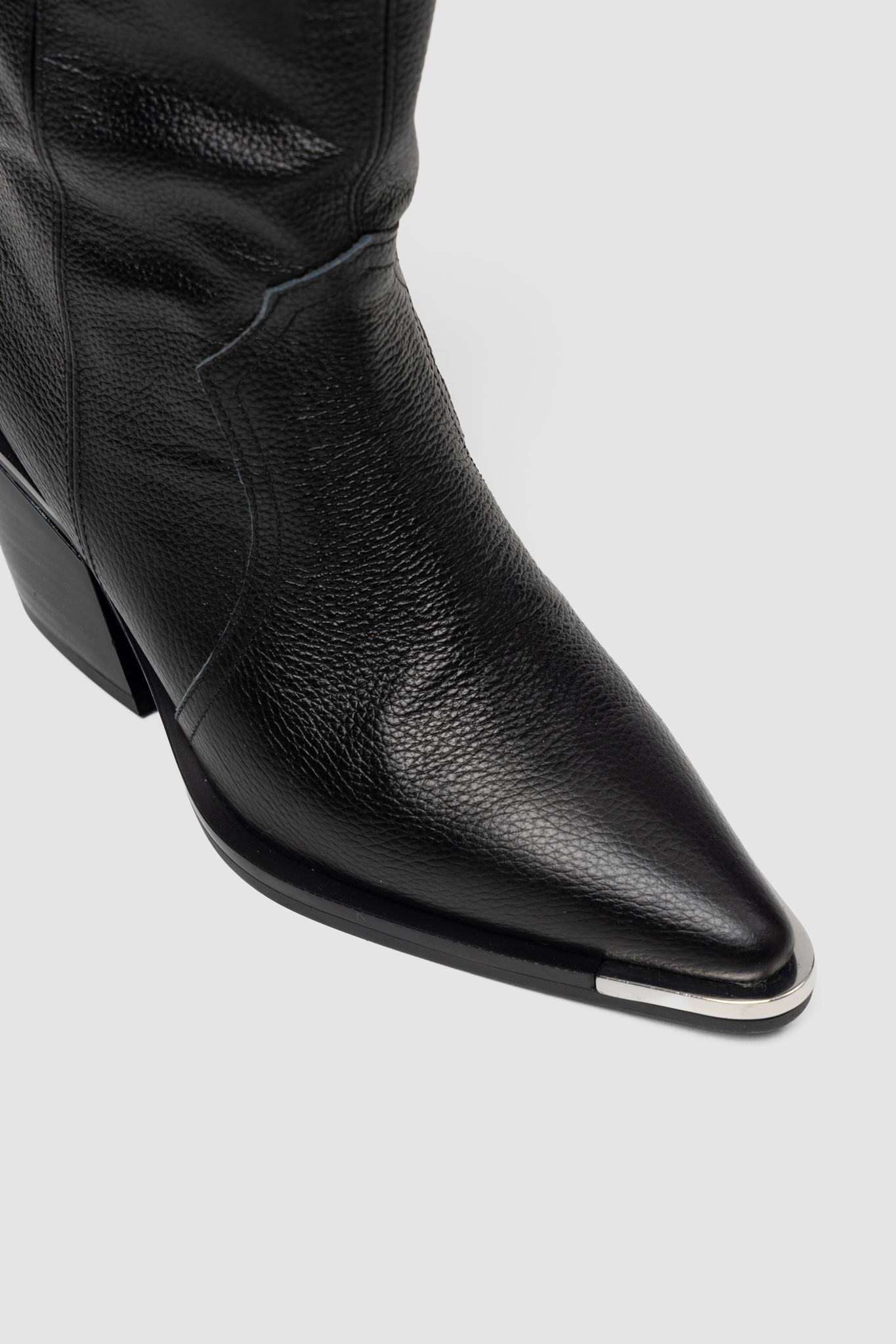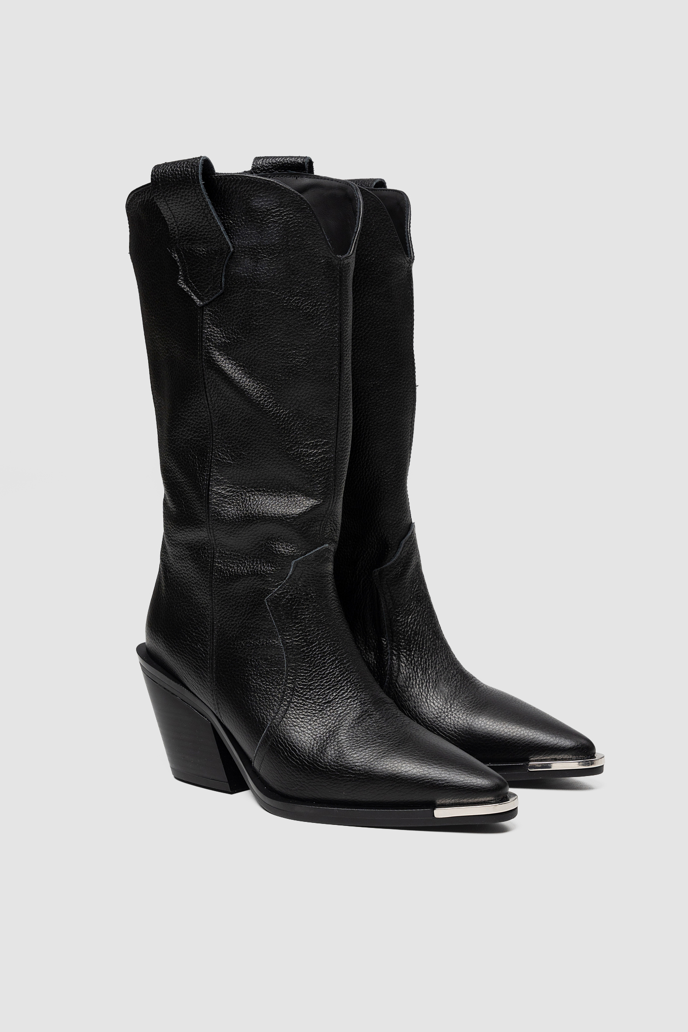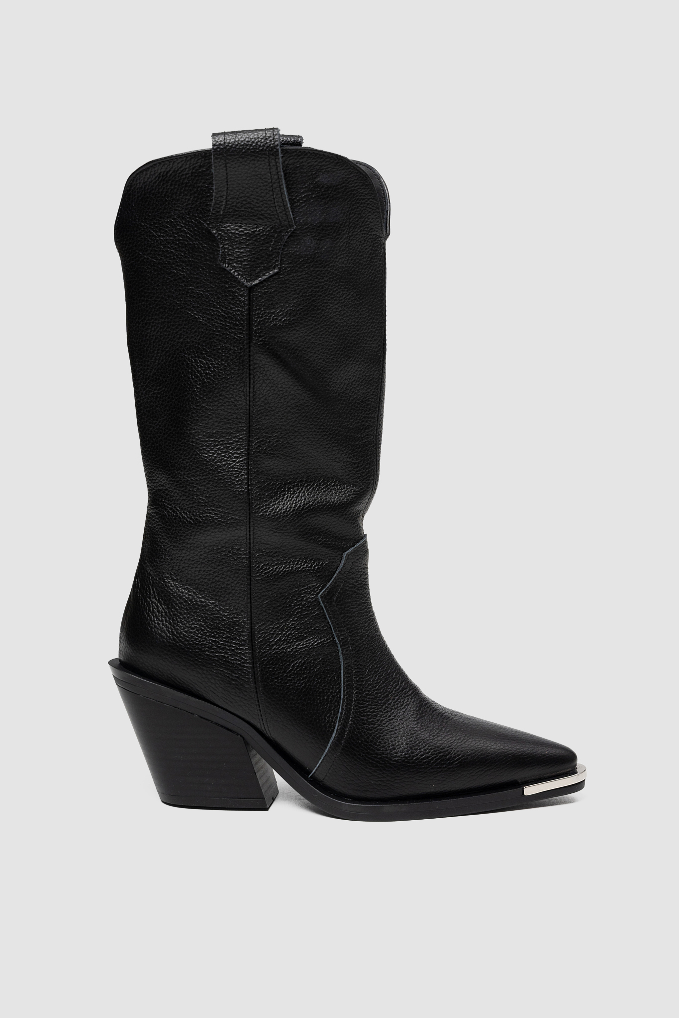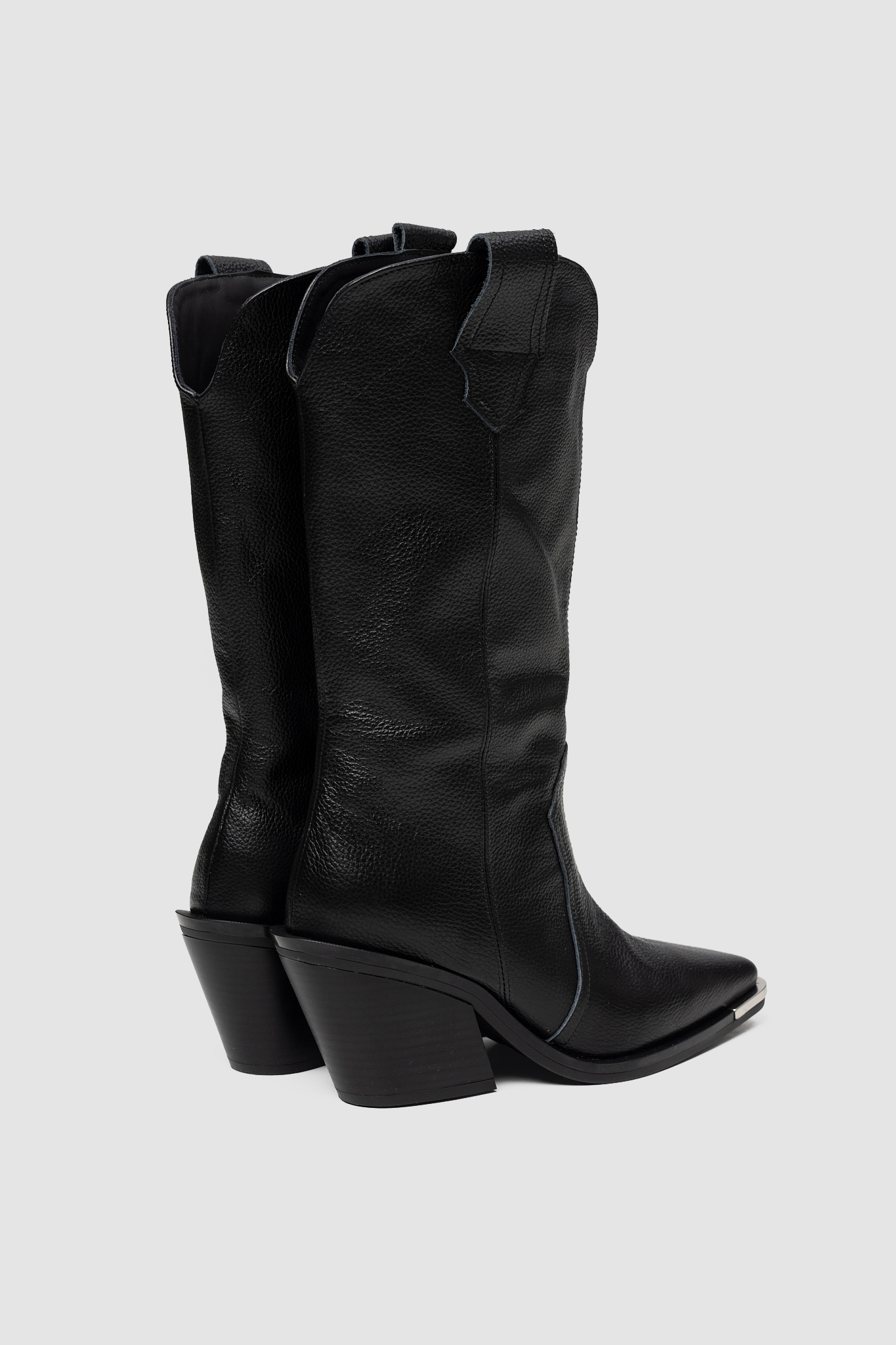 Eleganță western reinterpretată – aceste cizme cu toc gros și vârf ascuțit îmbină rafinamentul urban cu spiritul liber al vestului sălbatic. Construcția din piele naturala premium și finisajele metalice subtile transformă orice pas într-o declarație de stil.