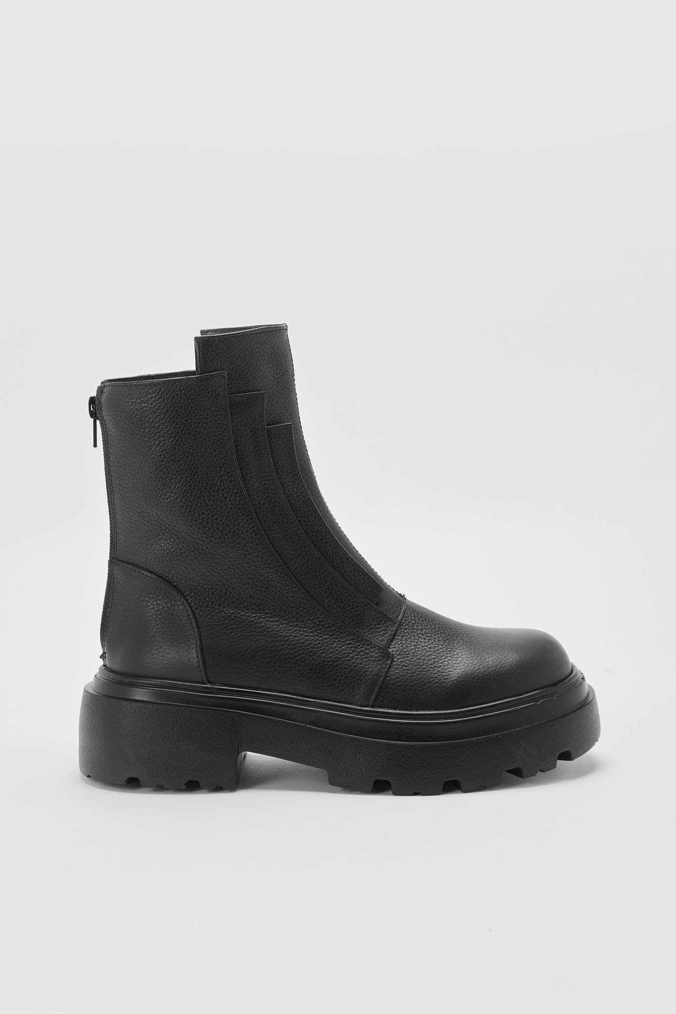 Realizate din piele naturală , cu textură fină și elegantă, ghetele sunt completate de fermoarul amplasat la spate, care asigură o încălțare rapidă și păstrează liniile frontale minimaliste. Talpa chunky oferă stabilitate, confort și un aer modern, inspirat din stilul urban.