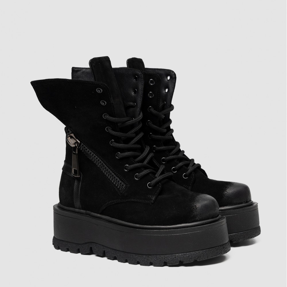 Bocancii „Wings – Black” din colecția FESTIVAL sunt alegerea perfectă pentru un look urban cu atitudine. Realizați manual în România din piele naturală 100%, acești bocanci se remarcă prin talpa înaltă extra-light (4 cm în față și 6 cm în spate), ce oferă confort sporit și stabilitate. Interiorul captusit cu piele și brantul cu extra burete asigură o purtare plăcută pe tot parcursul zilei. Detaliile de design includ două fermoare supradimensionate pe fiecare bocanc, adăugând un plus de originalitate. Disponibili în mărimile 35–40, acești bocanci sunt ideali pentru festivaluri și ieșiri în oraș, combinând stilul cu funcționalitatea.