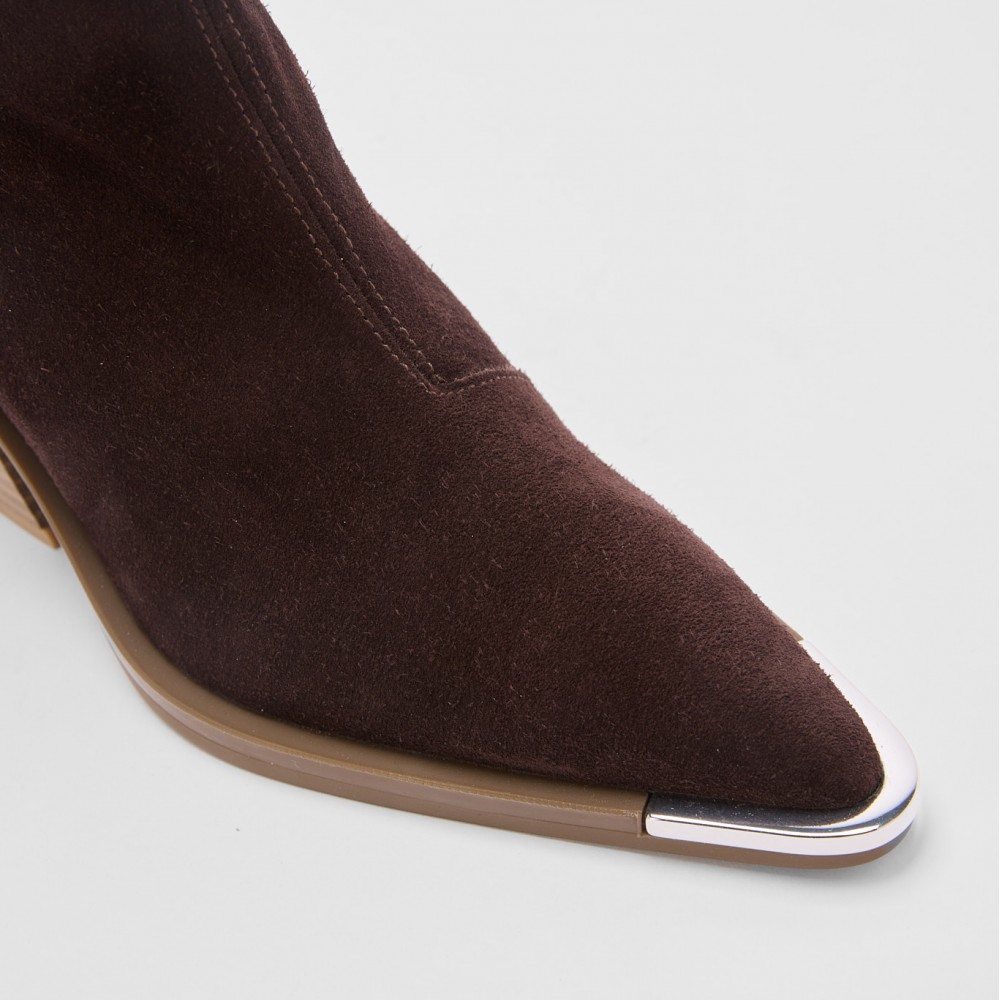 Realizate manual din piele naturală premium, aceste ciocate impresionează prin silueta structurată, textura fina a pielii și vârful ascuțit, evidențiat de inserția metalică discretă, care adaugă o notă de forță și eleganță urbană.