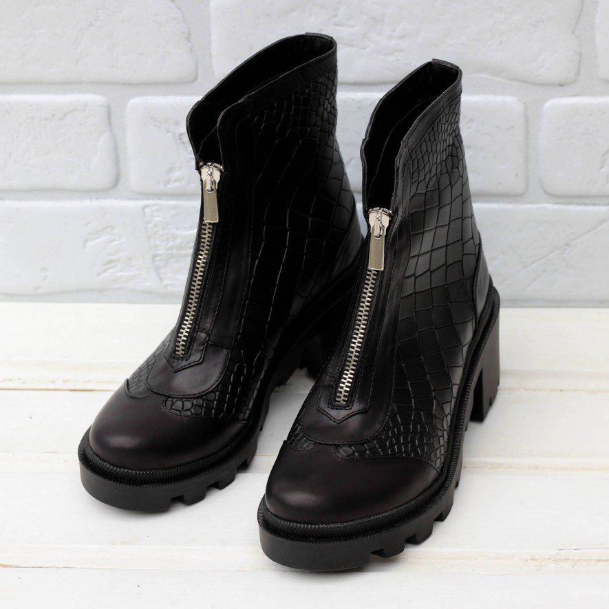 Ghetele sunt accesorizate cu fermoar argintiu metalic.