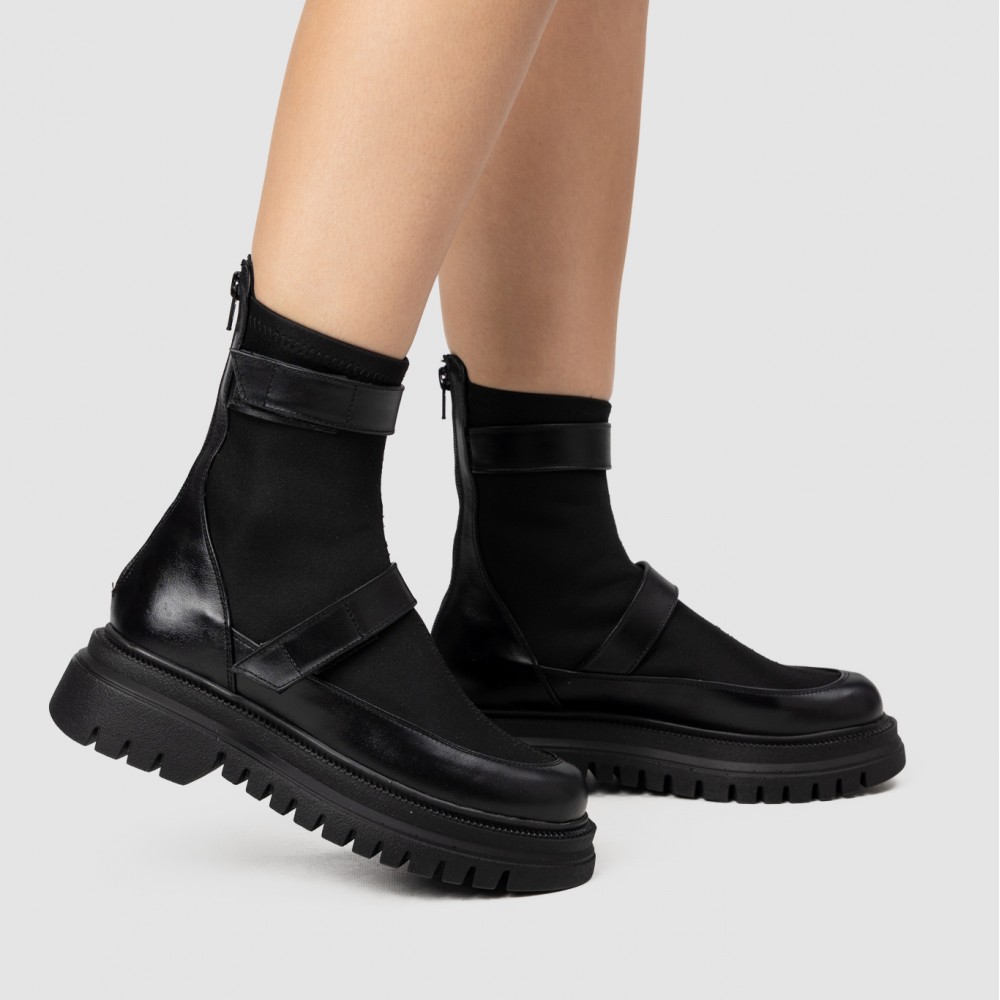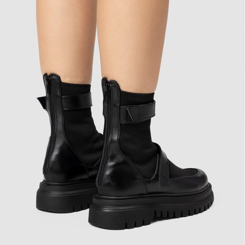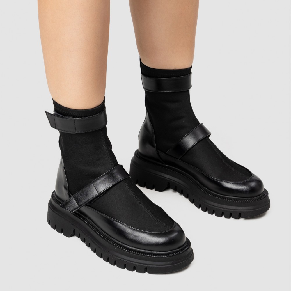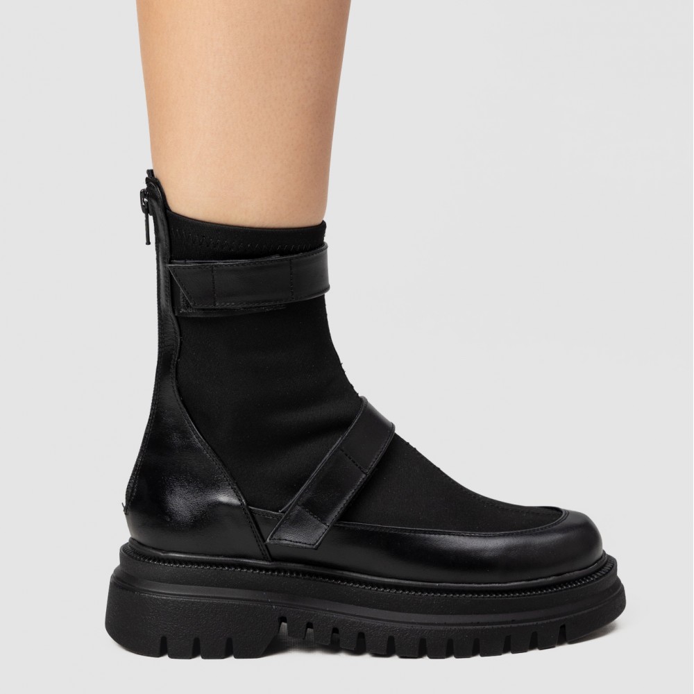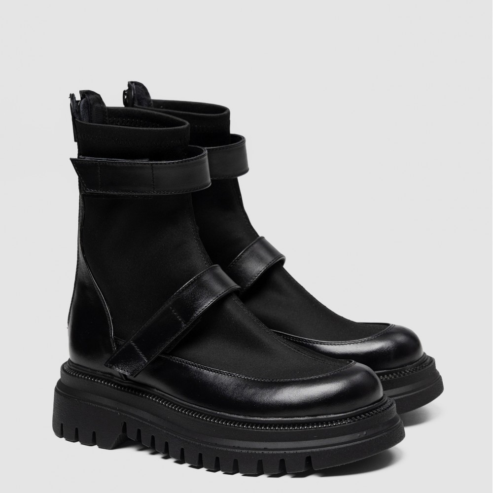 Un model care îmbină rafinamentul clasic cu accente moderne, aceste ghete din piele naturală neagră se disting prin designul curat și detaliile subtile ce conturează o siluetă feminină și sofisticată. Baretele decorative adaugă personalitate, păstrând în același timp un aer elegant și echilibrat.