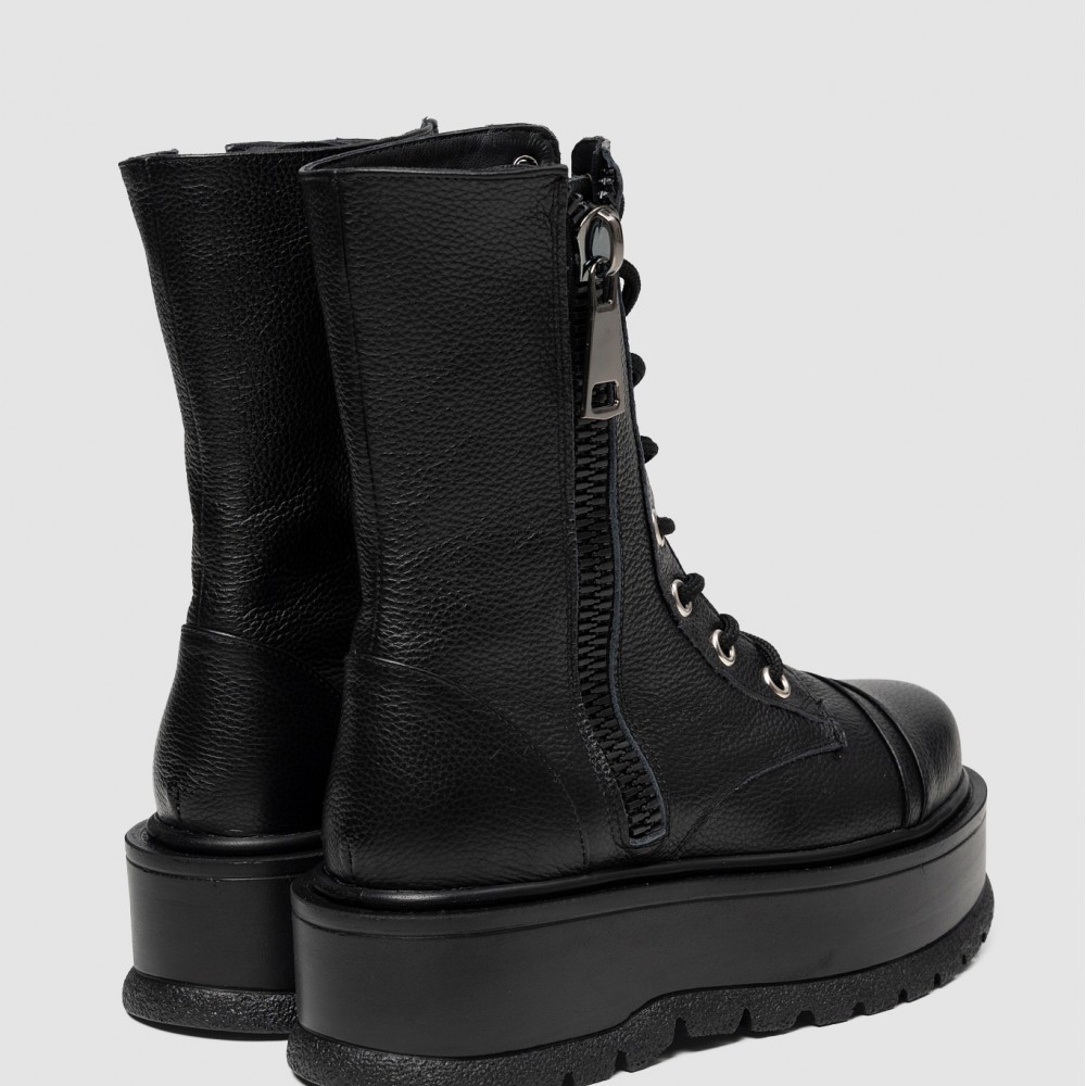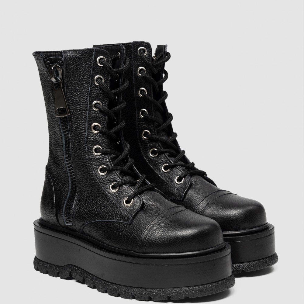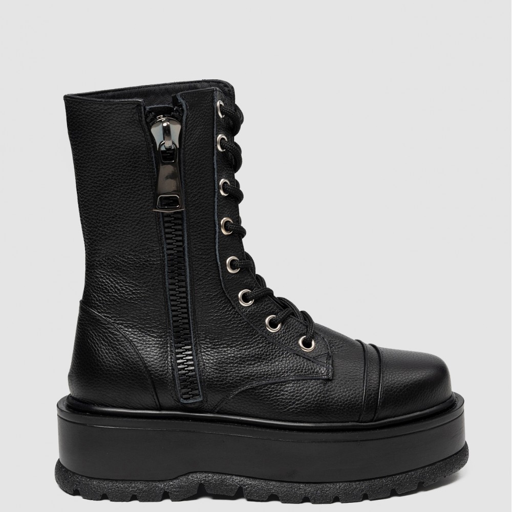 Șireturile metalice și fermoarul lateral conferă un aer actual și practic, în timp ce talpa chunky accentuează caracterul modern al modelului, oferind confort, stabilitate și un plus de atitudine. Urban Vibe este alegerea perfectă pentru femeia care își dorește un look puternic, dar rafinat.