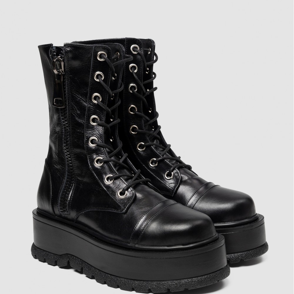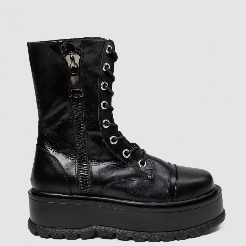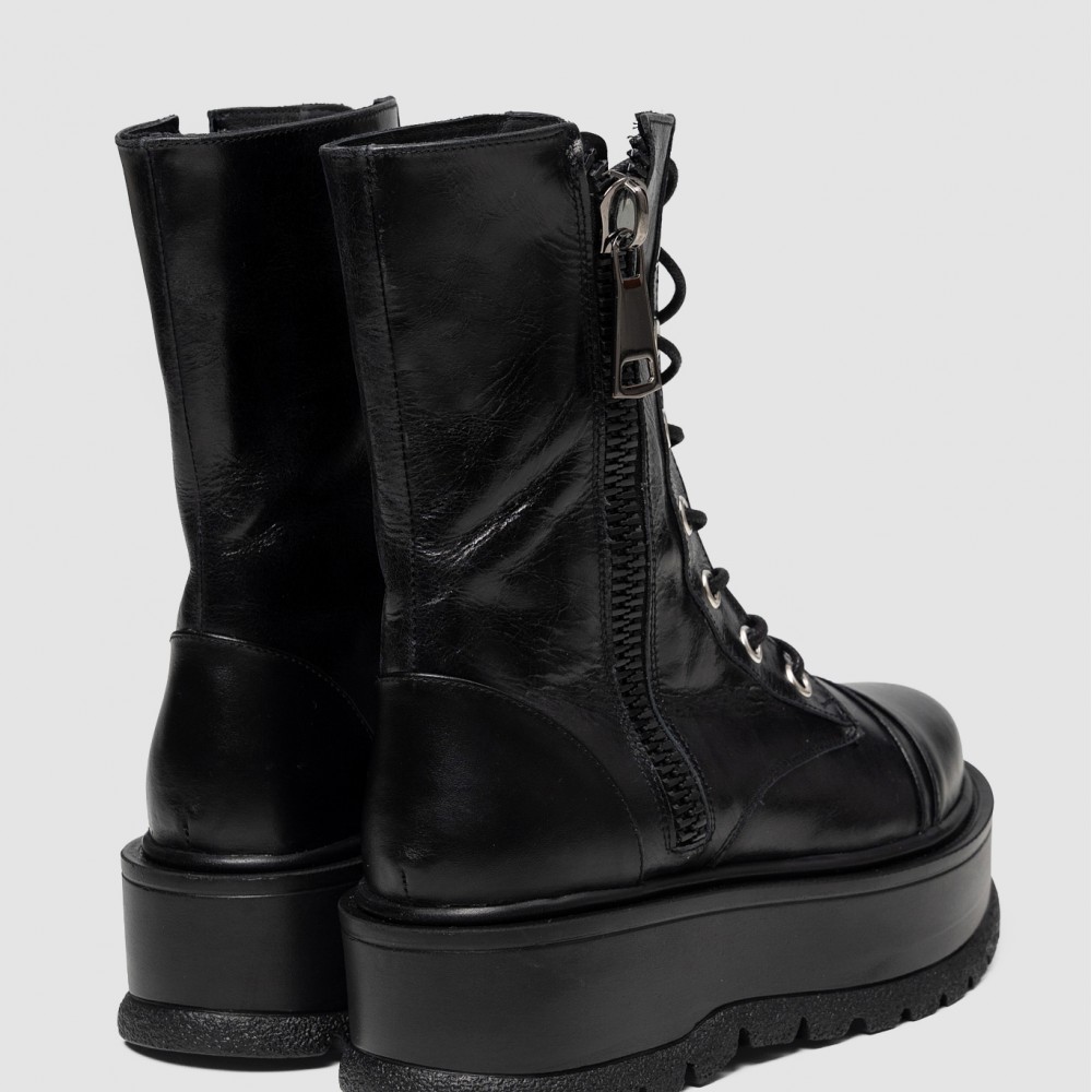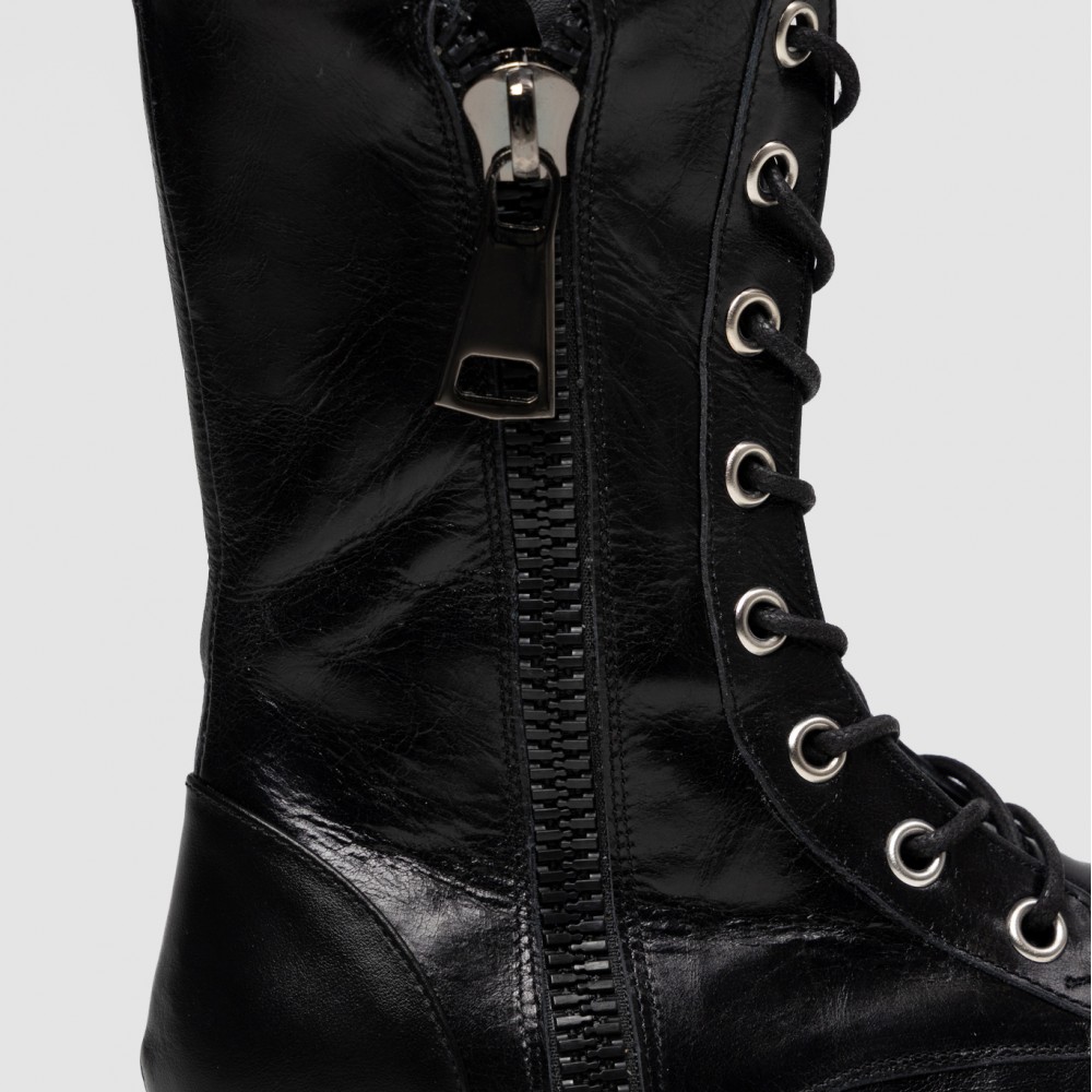 Șireturile cu capse metalice și fermoarul lateral păstrează funcționalitatea modernă, în timp ce talpa chunky oferă stabilitate și confort pe tot parcursul zilei. Jocul de texturi transformă acest model într-o piesă versatilă, ușor de remarcat, ideală pentru ținutele contemporane.