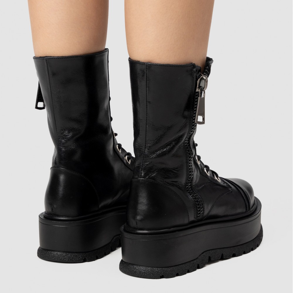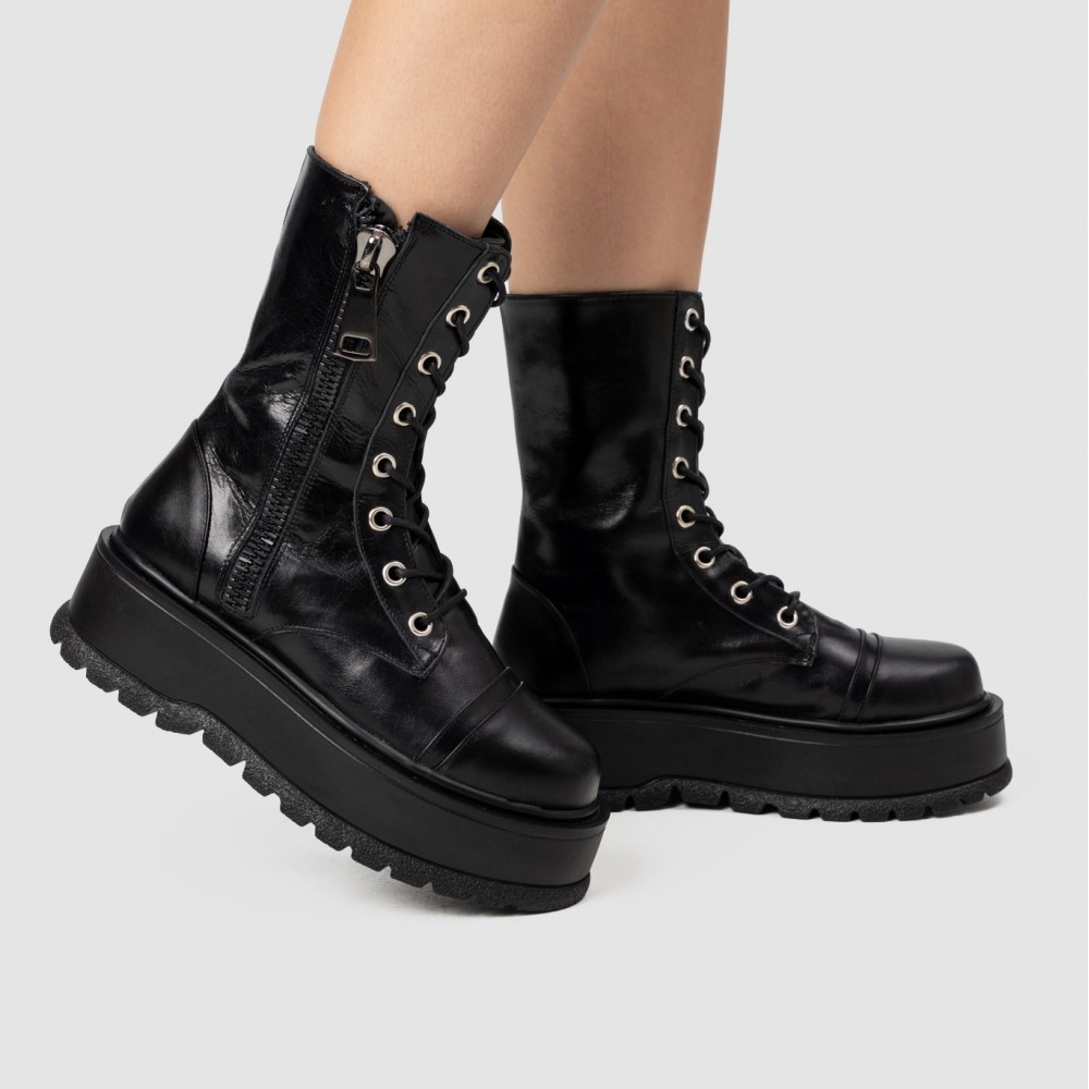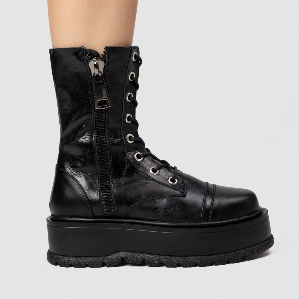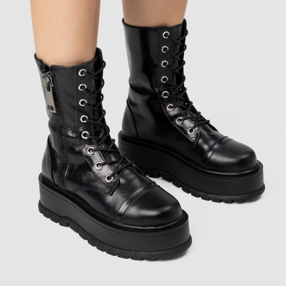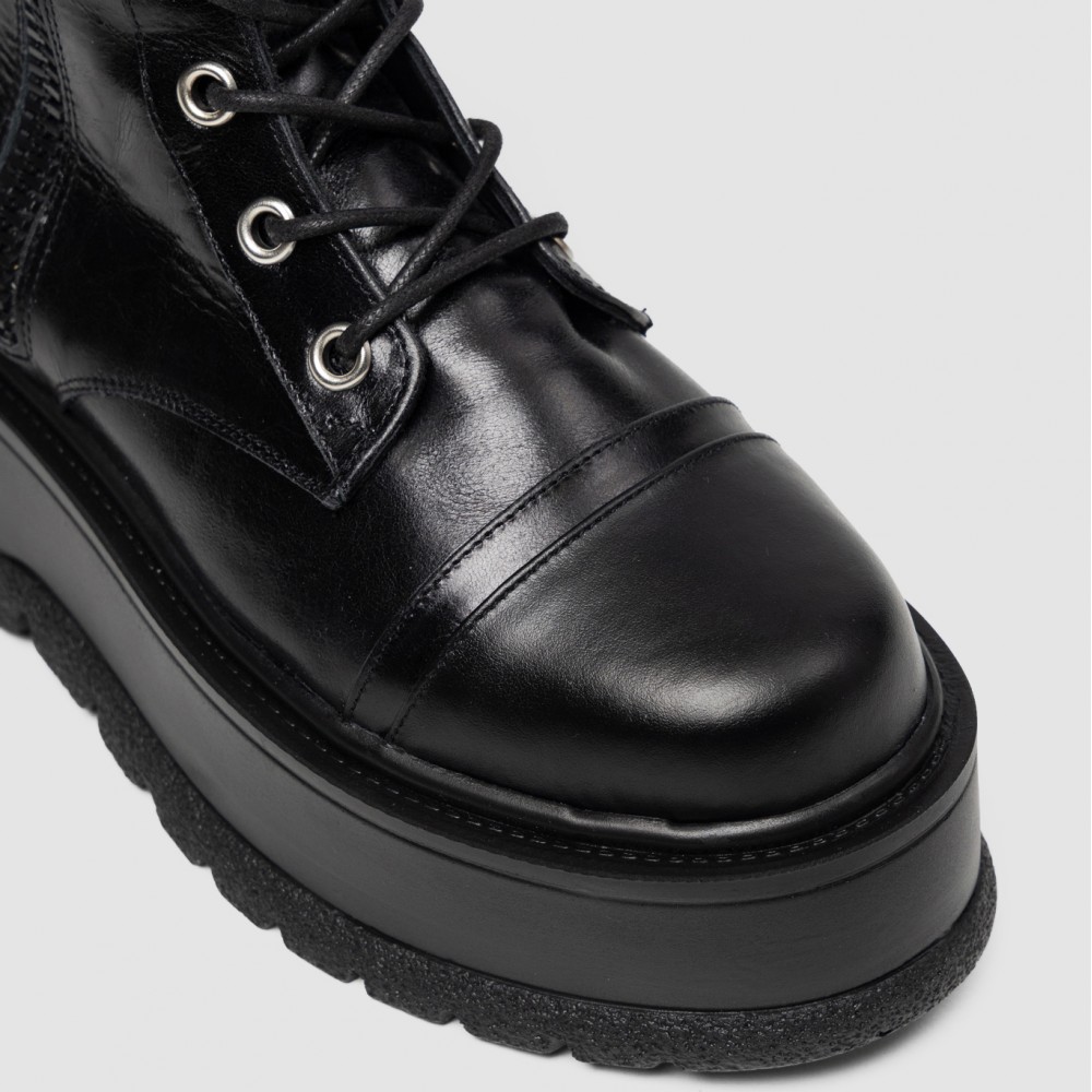 Șireturile cu capse metalice și fermoarul lateral păstrează funcționalitatea modernă, în timp ce talpa chunky oferă stabilitate și confort pe tot parcursul zilei. Jocul de texturi transformă acest model într-o piesă versatilă, ușor de remarcat, ideală pentru ținutele contemporane.