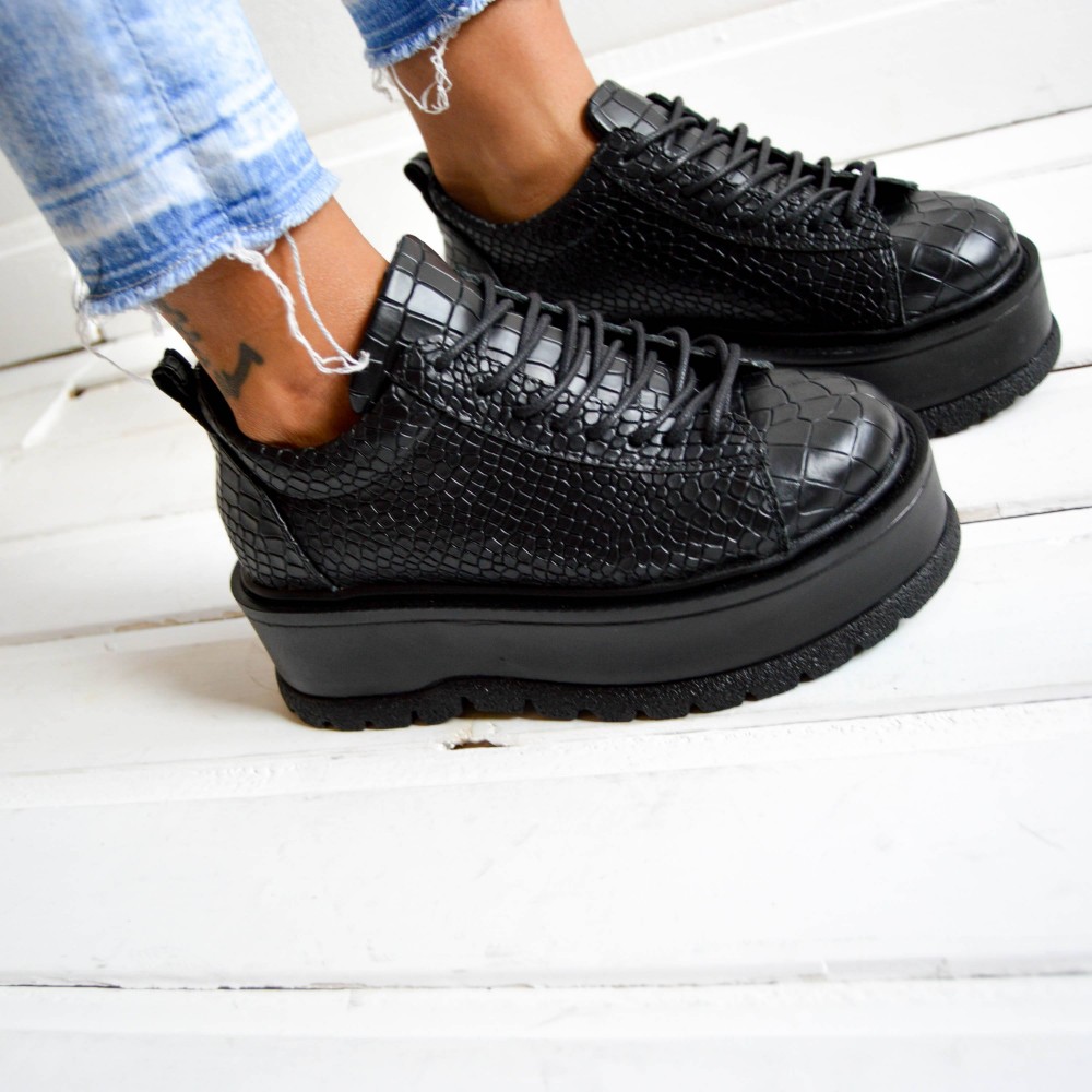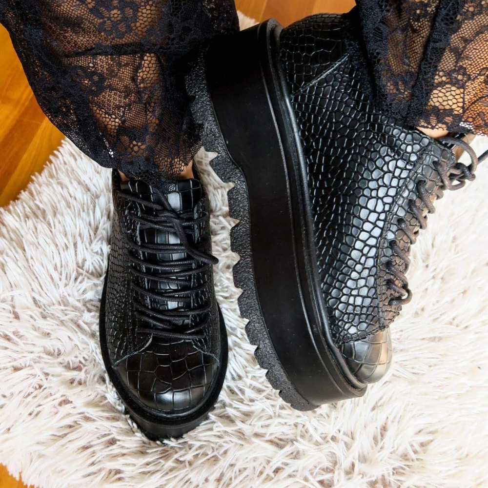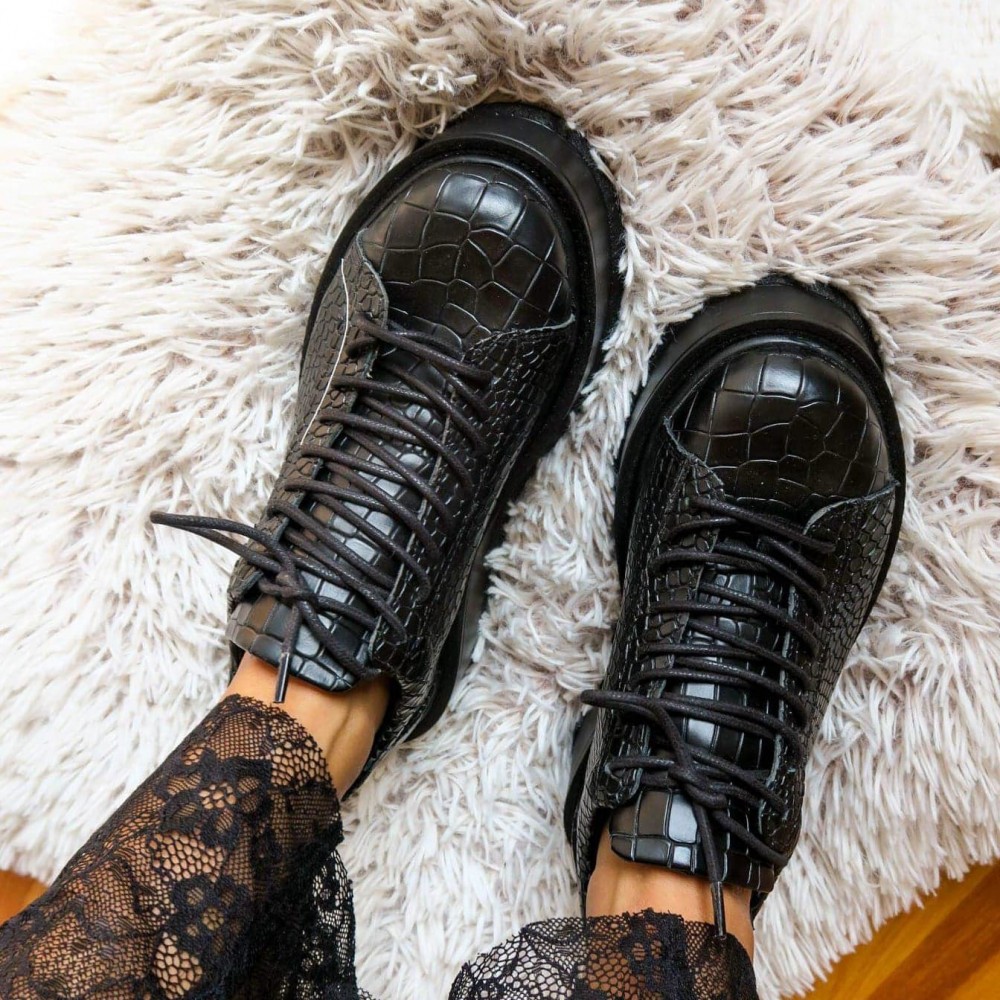 Sneakersi sunt accesorizati cu siret tip chinga.